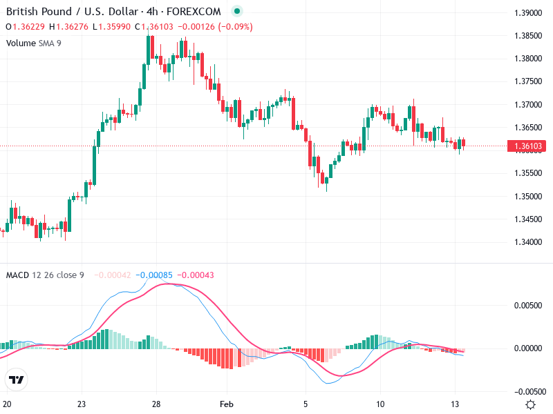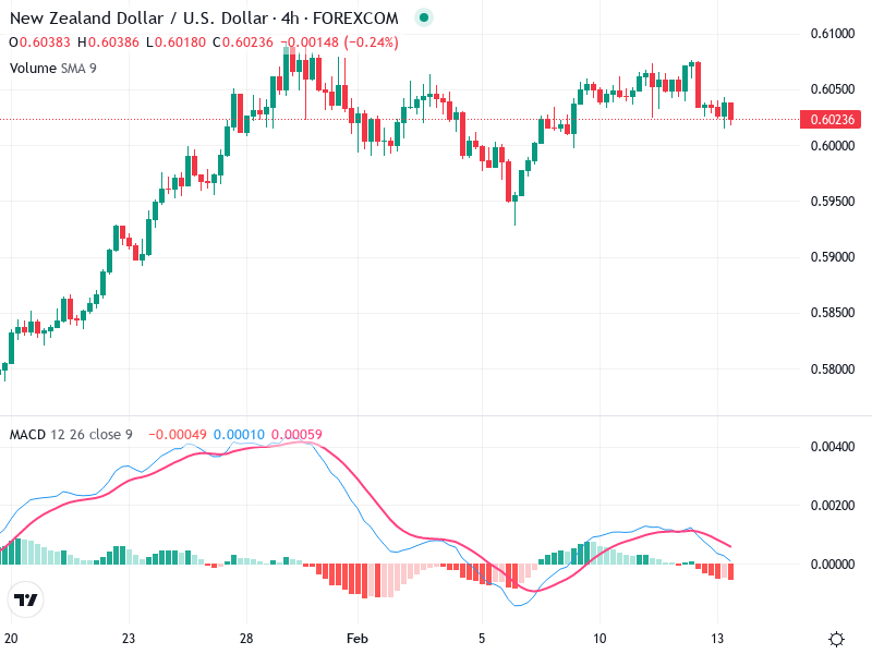 The MACD line is positioned below the Signal line, which underlines bearish momentum.