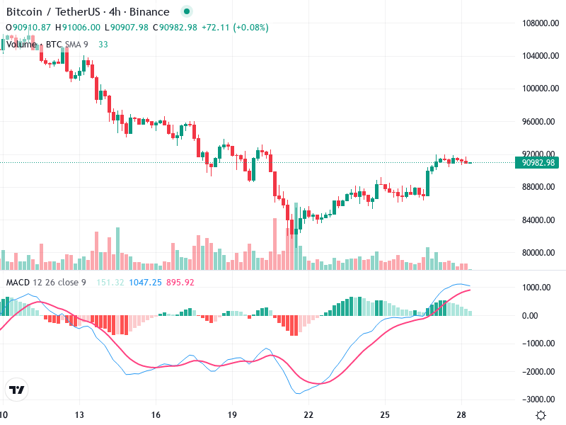 The area around 88,000 acted as a support where the price bounced back, while resistance near 92,000 is being tested.