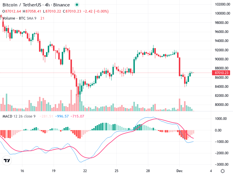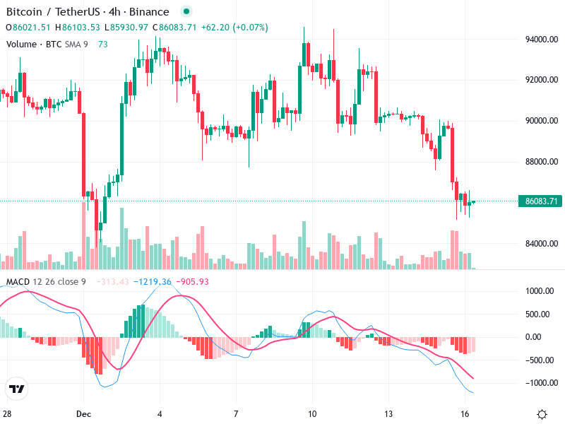 An immediate support is forming around the 86,000 level, with the price rebounding from there.