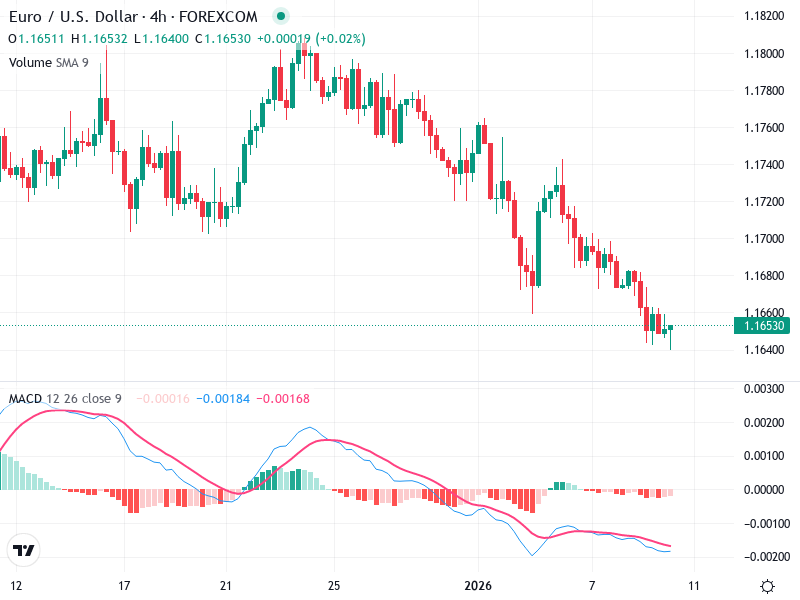 Monitor the MACD histogram for contraction and potential crossovers, and watch the 1.1650 support level closely.