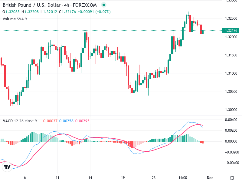 The price has pulled back from its high near 1.3250, acting as the immediate resistance zone.