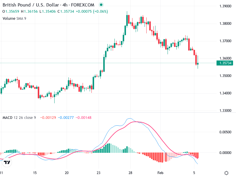 The 4-hour chart of GBP/USD reveals a recent shift towards bearish momentum.