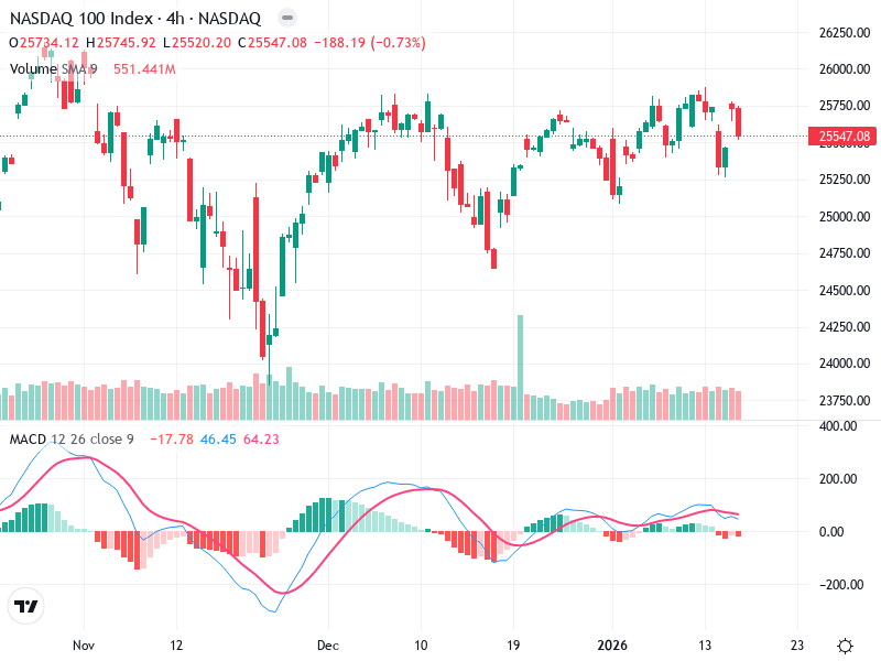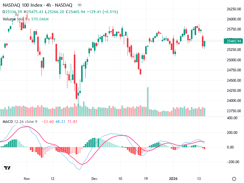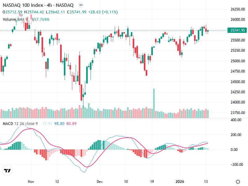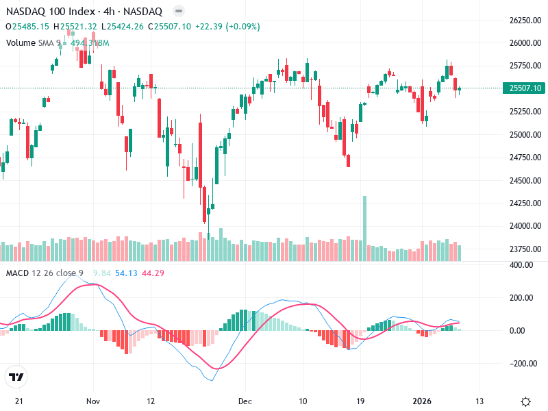 The 4-hour chart displays a sideways trend with some consolidation after a recent uptick.