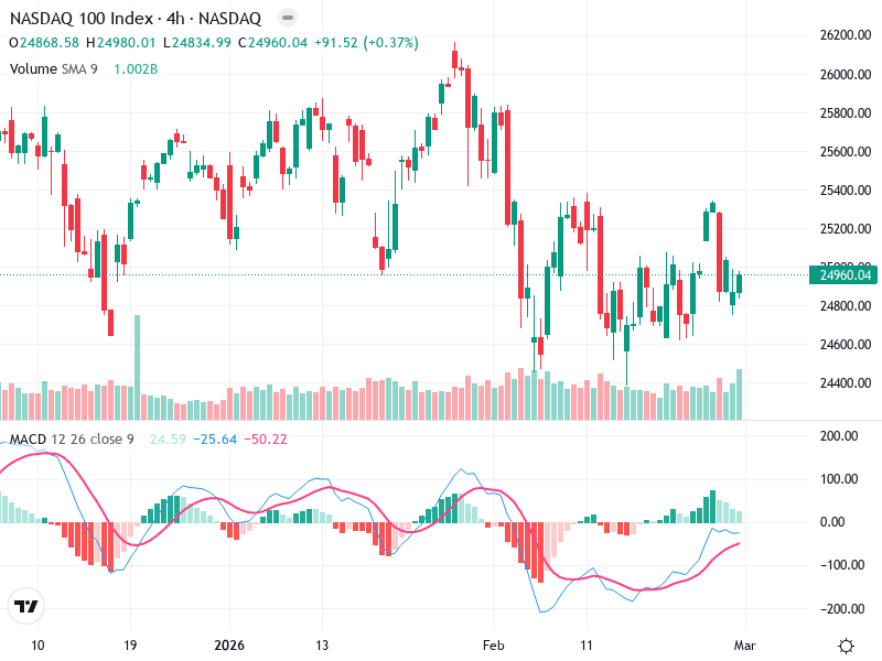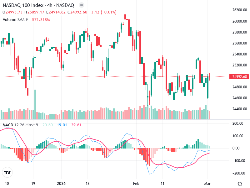 The MACD line is slightly below the Signal line, indicating mild bearish sentiment but with weak momentum.
