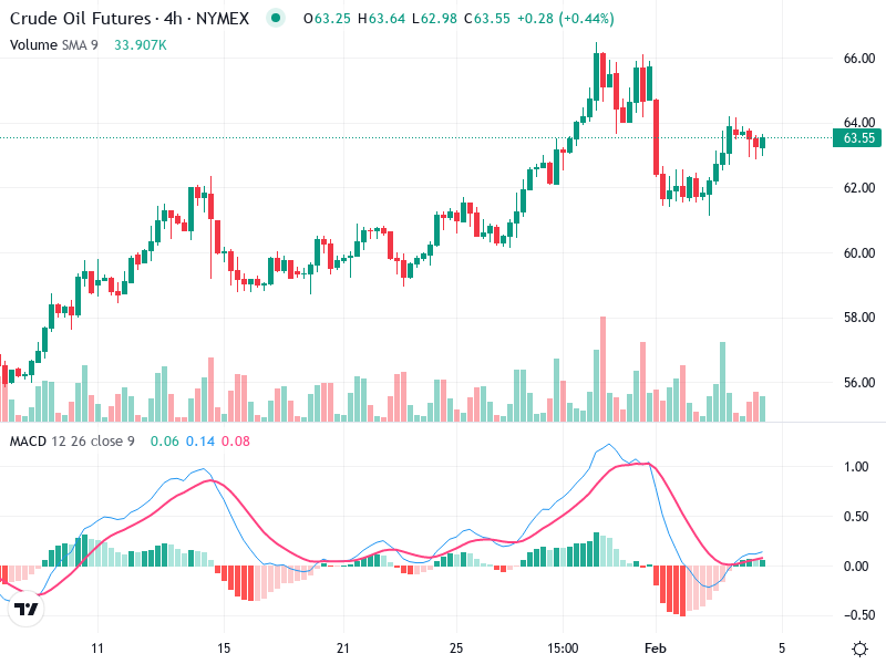 The chart for Crude Oil Futures reflects a cautiously bullish outlook. Recent trends highlight higher highs and higher lows from mid-January to early February. Traders need to watch key levels for confirmation of continued momentum.